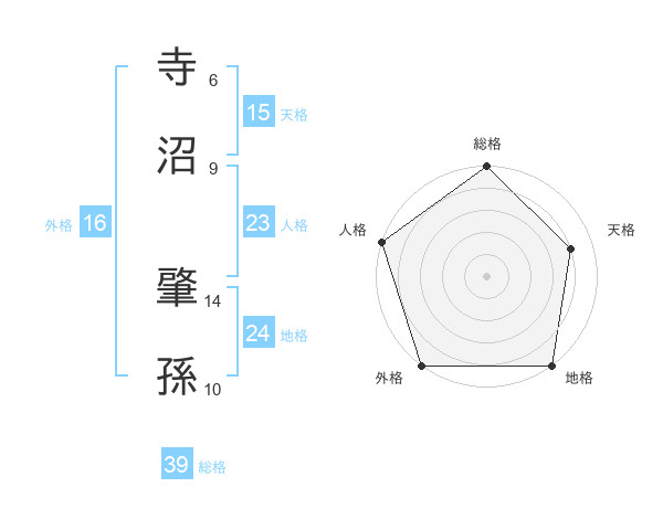 寺沼 肇孫さんの総格は39画の5点!