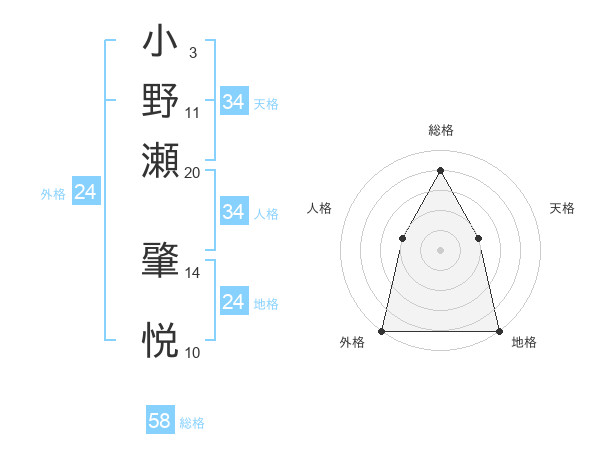 小野瀬 肇悦さんを姓名の画数から五運を鑑定