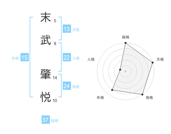 末武 肇悦さんの総格は37画の5点!