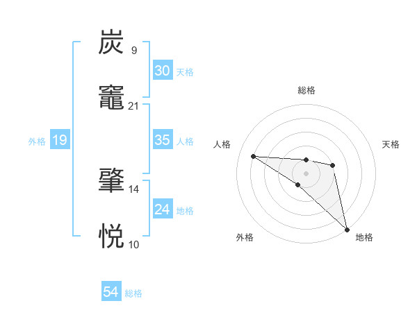 炭竈 肇悦さんの総格は54画の1点!