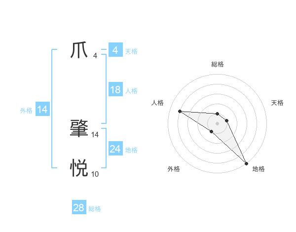 爪 肇悦さんの外格は14画の1点!