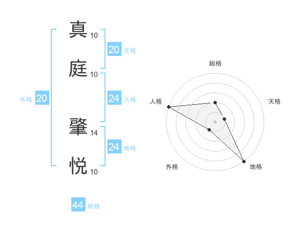 真庭 肇悦さんの総格は44画の2点!