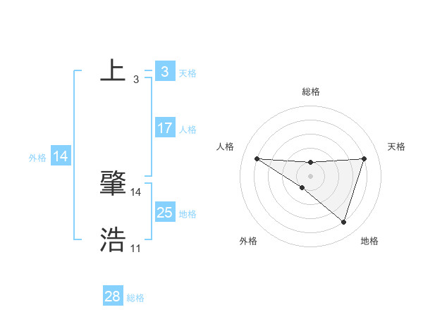 上 肇浩さんの総格は28画の1点!