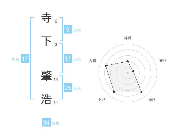 寺下 肇浩さんの総格は34画の2点!