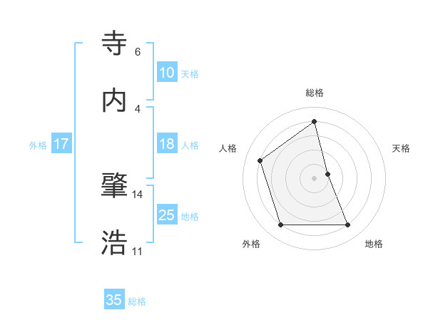 寺内 肇浩さんの総格は35画の4点!