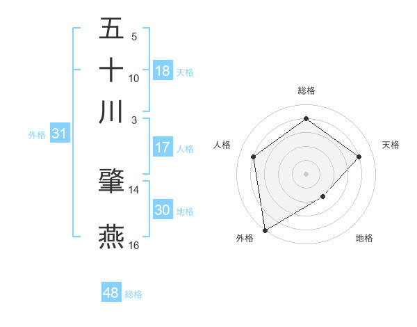 五十川 肇燕さんを姓名の画数から五運を鑑定