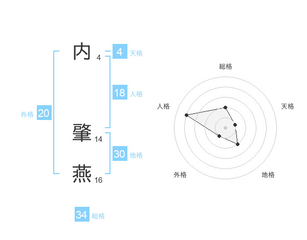 内 肇燕さんの総格は34画の2点!