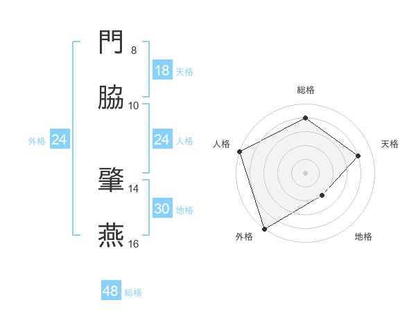 門脇 肇燕さんの総格は48画の4点!
