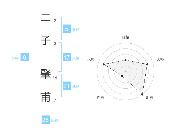 二子 肇甫さんの地格は21画の5点!