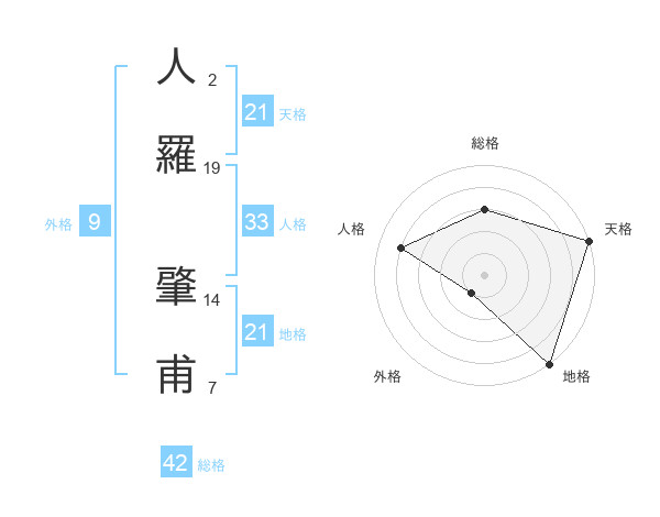 人羅 肇甫さんの天格は21画の5点!