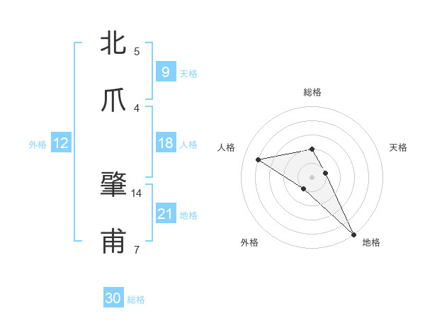 北爪 肇甫さんの地格は21画の5点!