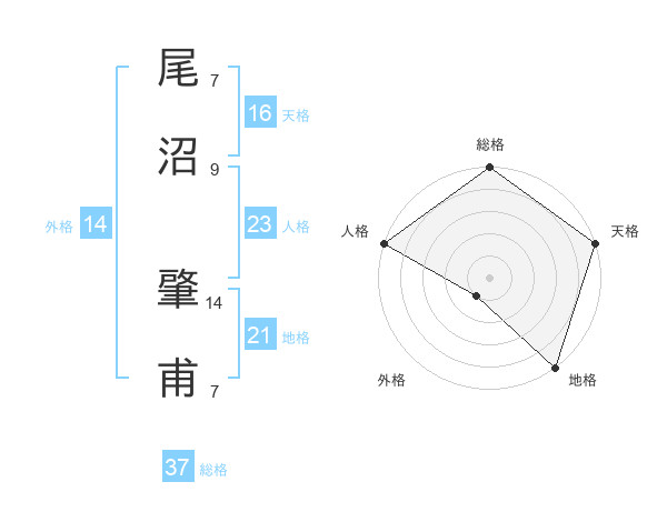 尾沼 肇甫さんの総格は37画の5点!