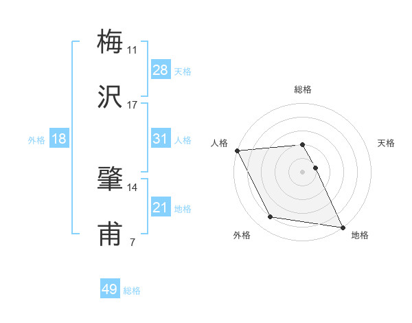 梅沢 肇甫さんの総格は49画の2点!