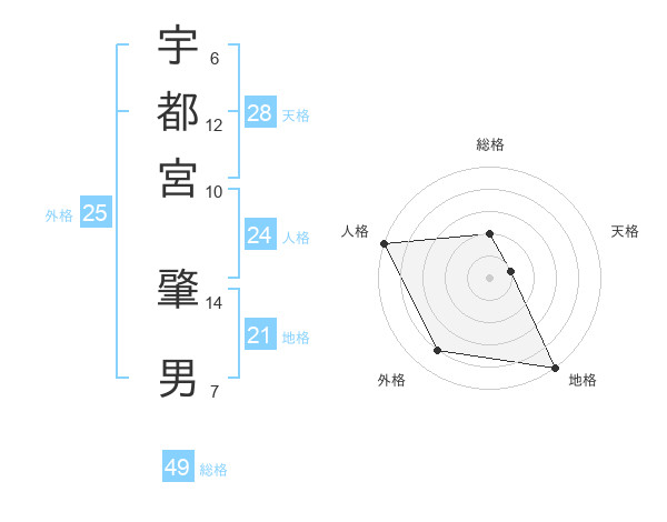 宇都宮 肇男さんを姓名の画数から五運を鑑定
