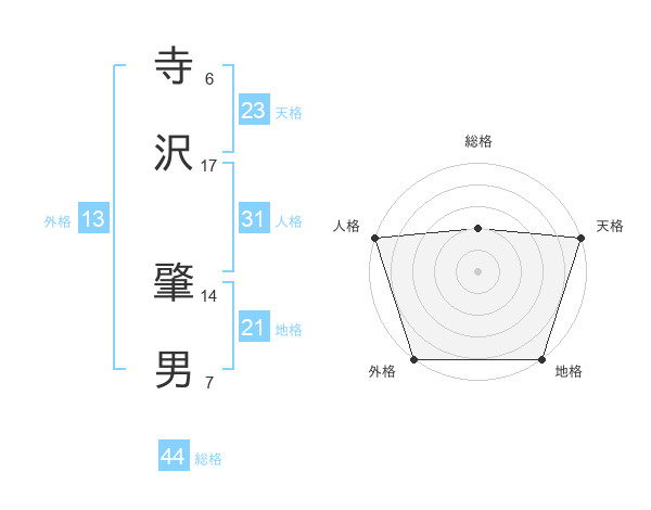 寺沢 肇男さんの外格は13画の5点!