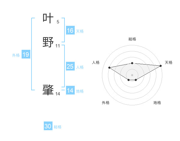 叶野 肇さんの外格は19画の1点!