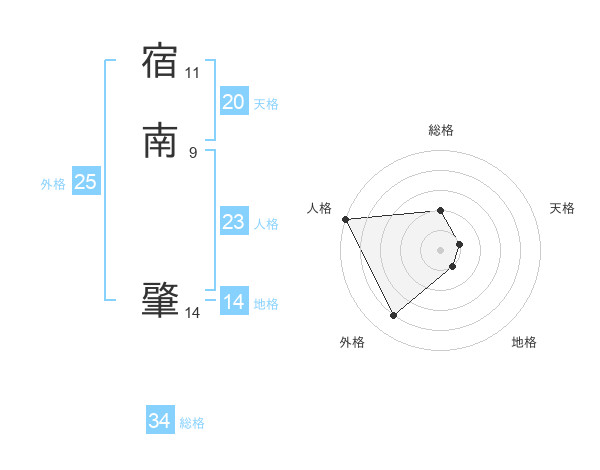 宿南 肇さんの人格は23画の5点!