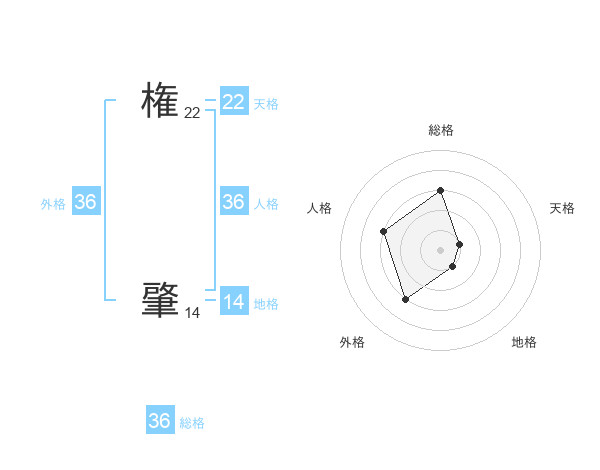 権 肇さんの外格は36画の3点