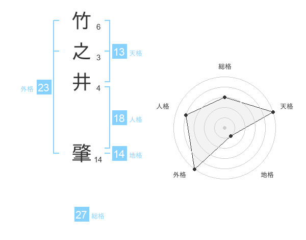 竹之井 肇さんを姓名の画数から五運を鑑定