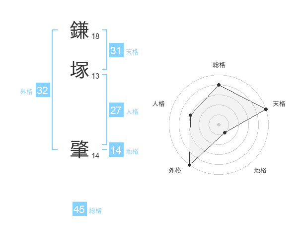鎌塚 肇さんの総格は45画の4点!