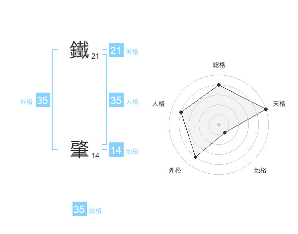 鐵 肇さんの総格は35画の4点!