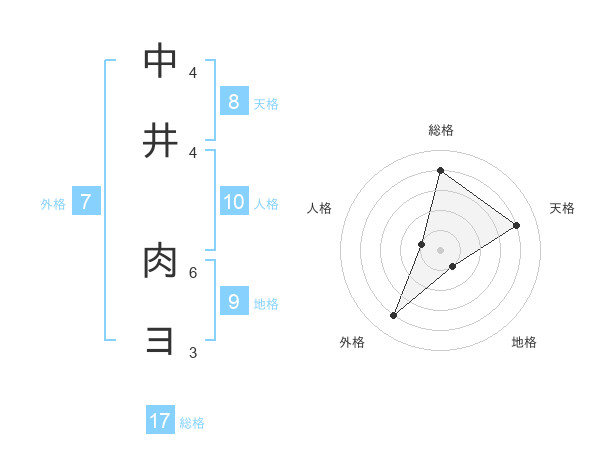 中井 肉ヨさんを姓名の画数から五運を鑑定