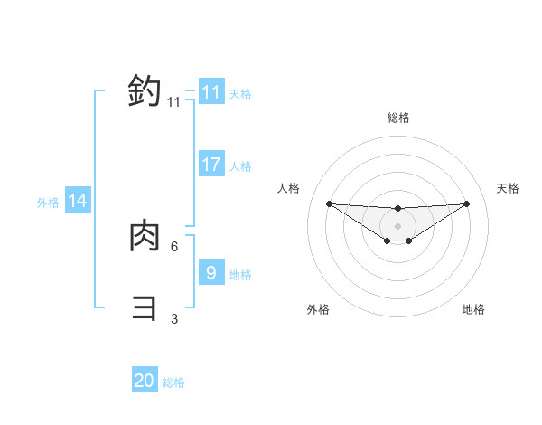 釣 肉ヨさんの人格は17画の4点!