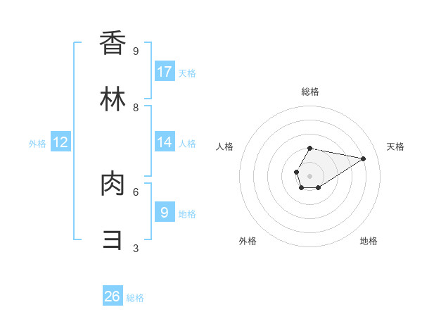 香林 肉ヨさんを姓名の画数から五運を鑑定