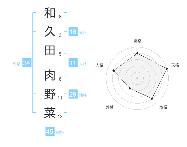 和久田 肉野菜さんを姓名の画数から五運を鑑定