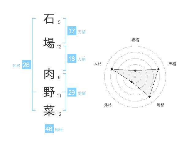 石場 肉野菜さんの総格は46画の1点