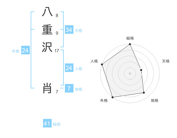 八重沢 肖さんの外格は24画の5点!