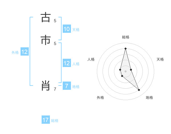 古市 肖さんの総格は17画の4点!