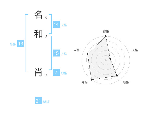 名和 肖さんの総格は21画の5点!