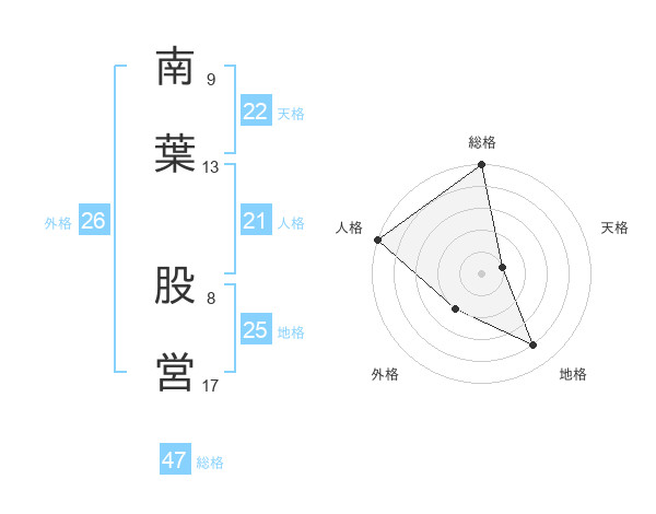 南葉 股営さんの総格は47画の5点!