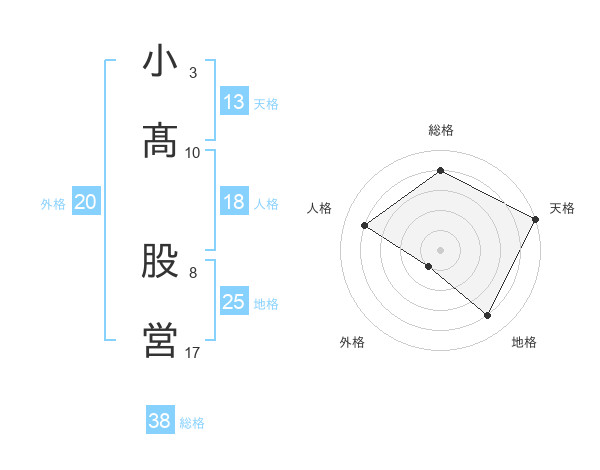 小髙 股営さんの総格は38画の4点!