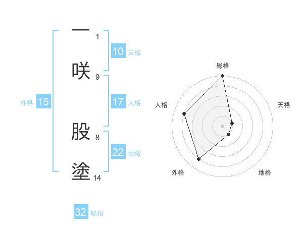 一咲 股塗さんを姓名の画数から五運を鑑定