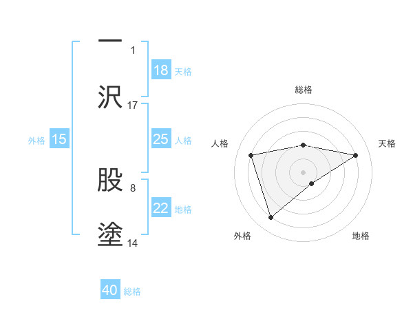 一沢 股塗さんを姓名の画数から五運を鑑定