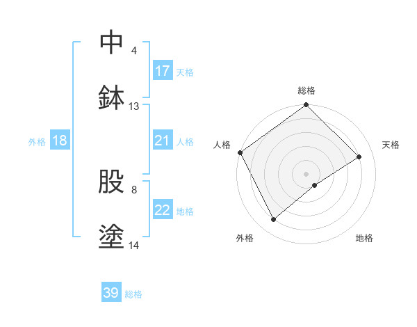 中鉢 股塗さんの天格は17画の4点!