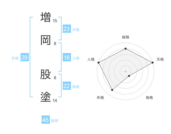 増岡 股塗さんを姓名の画数から五運を鑑定