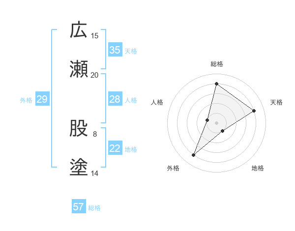 広瀬 股塗さんを姓名の画数から五運を鑑定