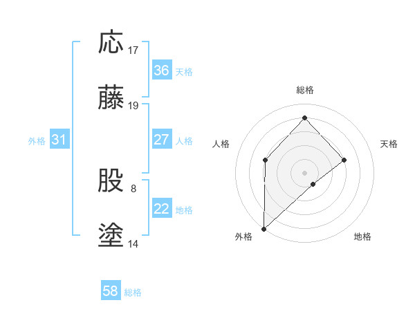 応藤 股塗さんの総格は58画の4点!