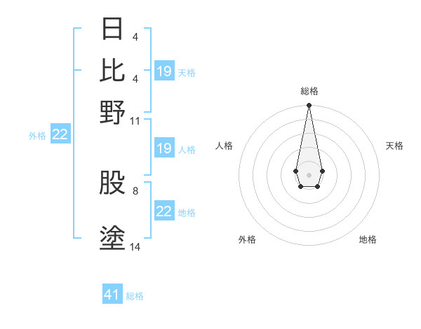 日比野 股塗さんを姓名の画数から五運を鑑定