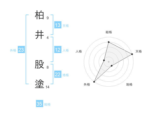 柏井 股塗さんの総格は35画の4点!