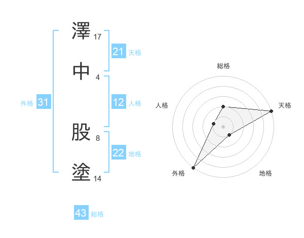 澤中 股塗さんの天格は21画の5点!