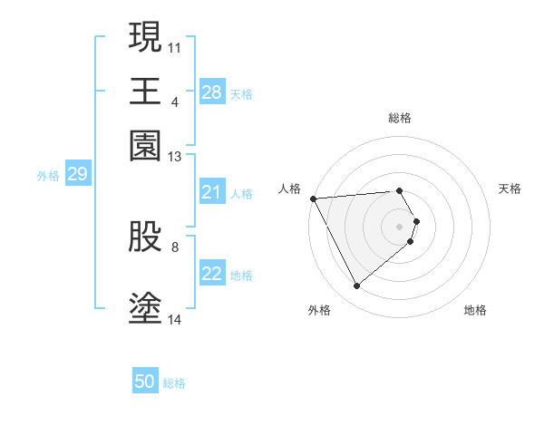 現王園 股塗さんを姓名の画数から五運を鑑定