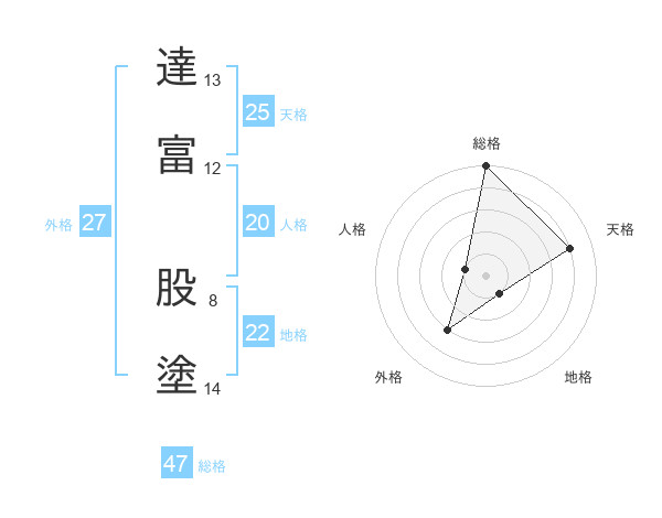 家系が持つ宿命的な運勢を表します。祖先から受け継いだ苗字ですので自分の力が及びません。家柄を象徴します。