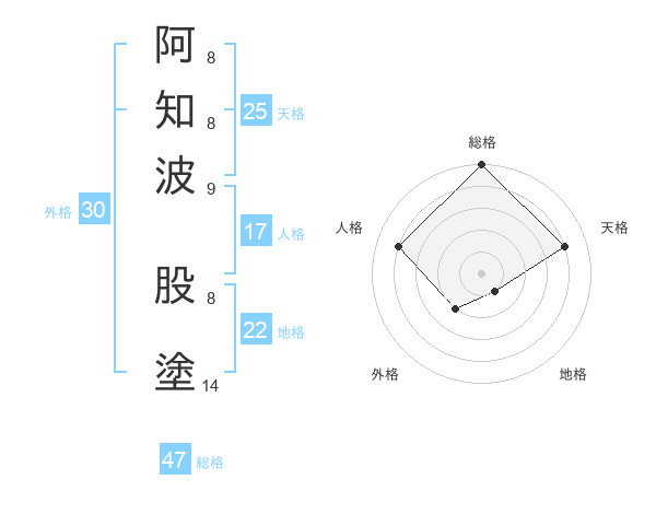 阿知波 股塗さんを姓名の画数から五運を鑑定