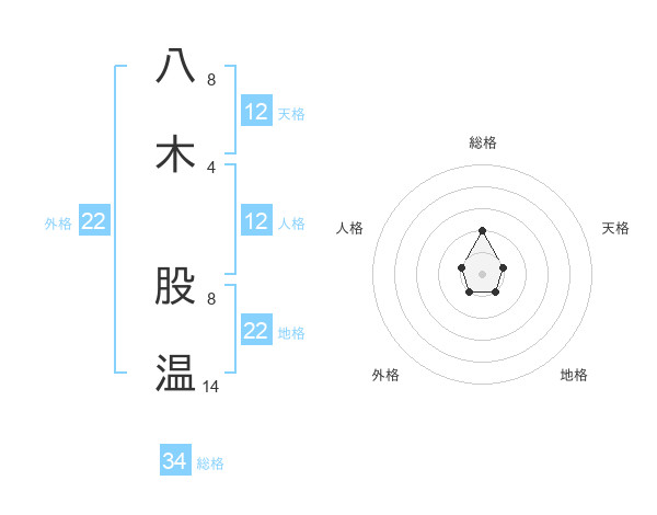八木 股温さんの地格は22画の1点!