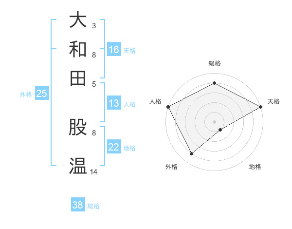 大和田 股温さんの総格は38画の4点!