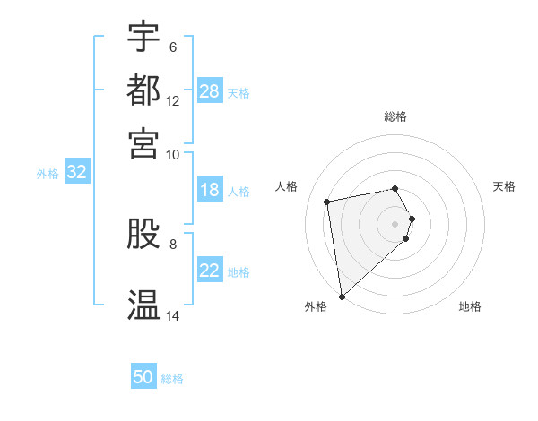 宇都宮 股温さんを姓名の画数から五運を鑑定
